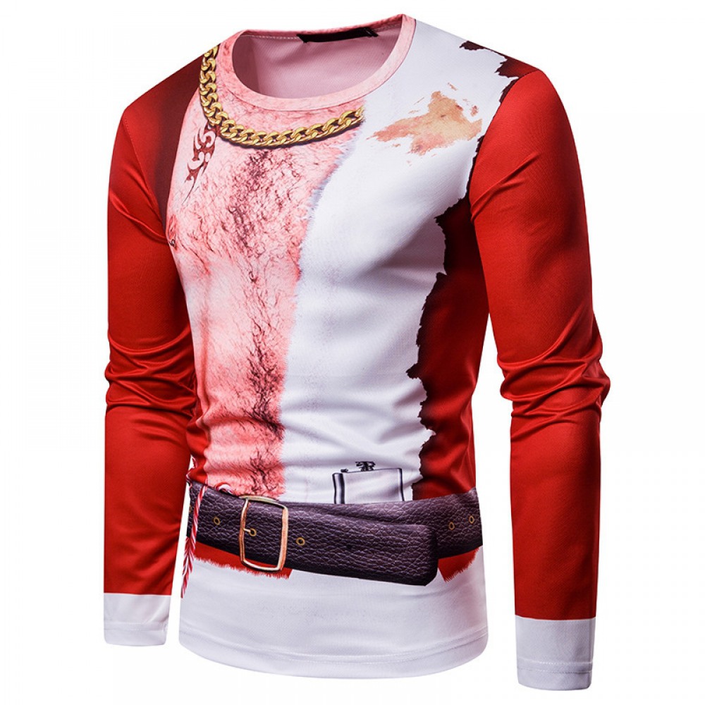 New 3D Personality Printing Fashion Men's Christmas Pattern Long-Sleeved T-Shirt