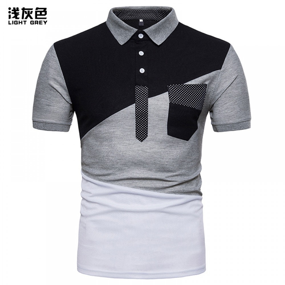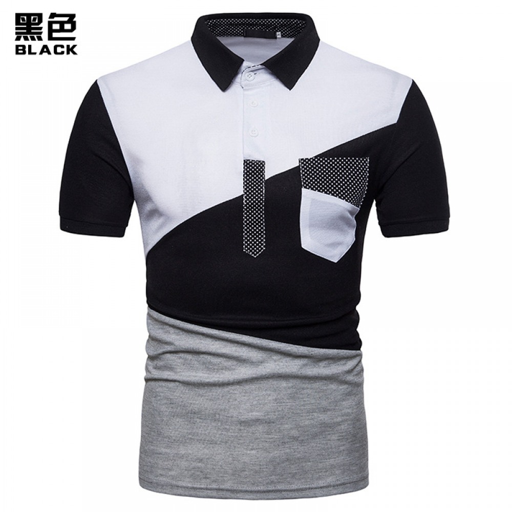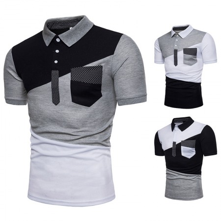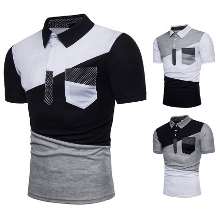 New Men's Irregular Color Matching Stitching Short Sleeve Polo