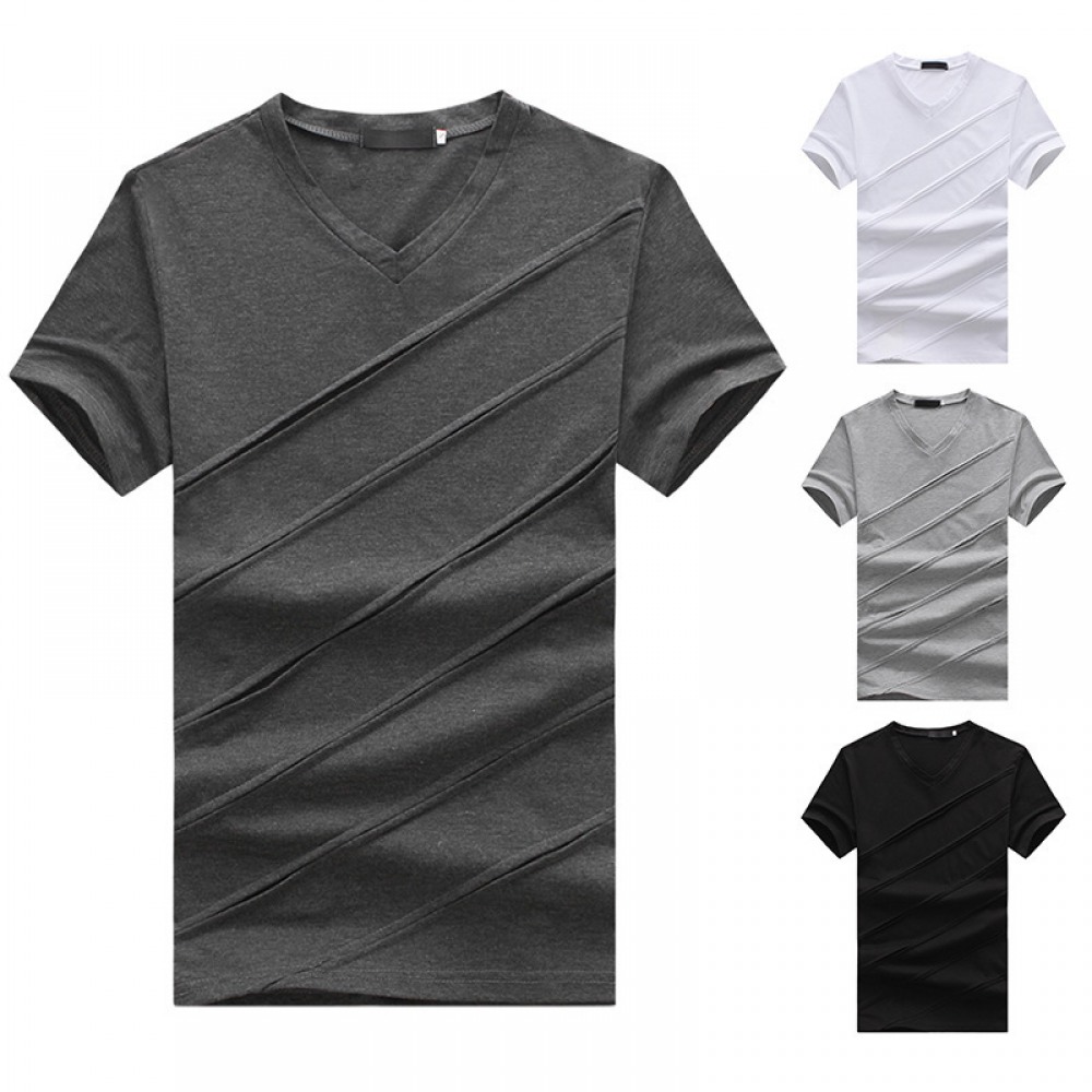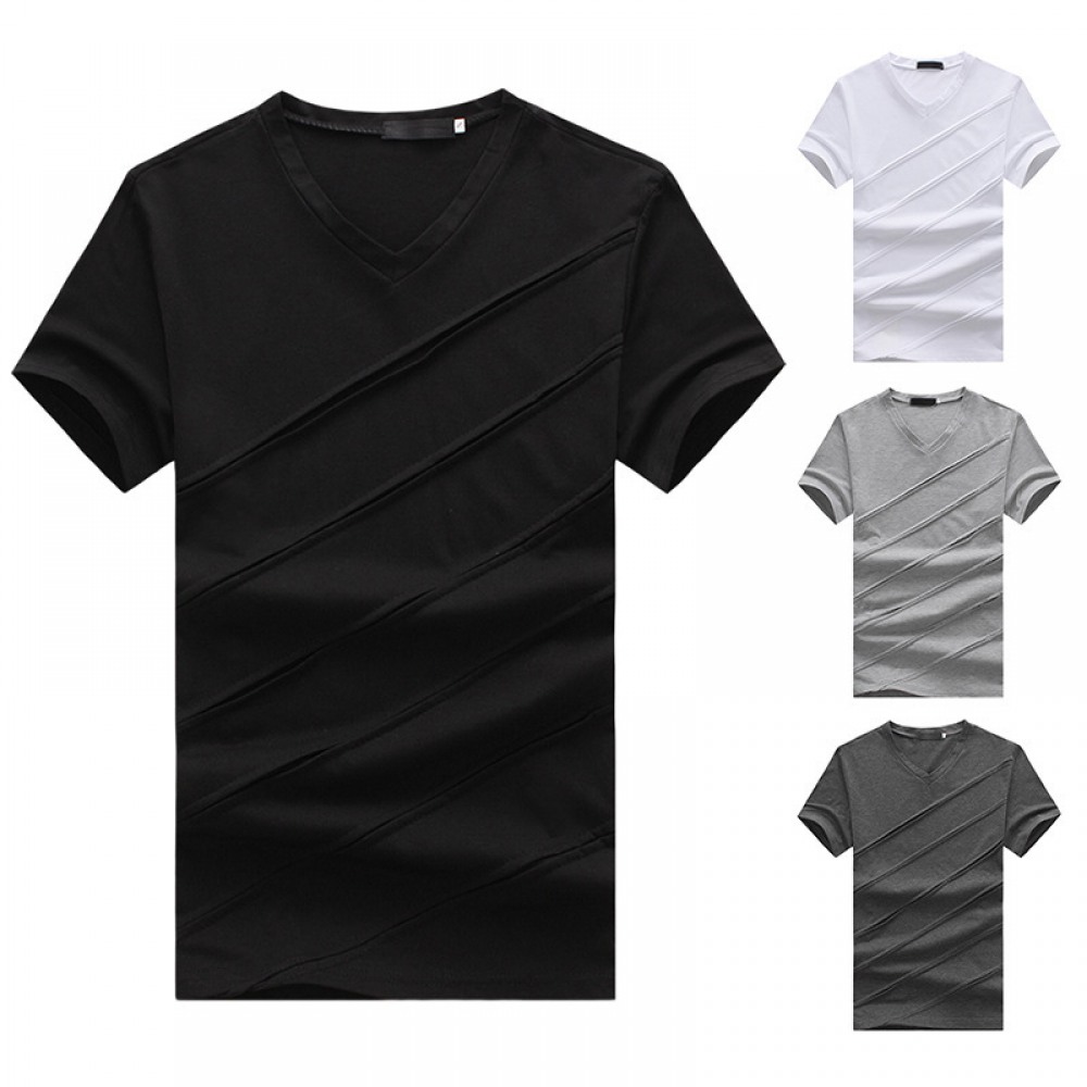 New Men's Large Size Pleated Short Sleeve T-Shirt